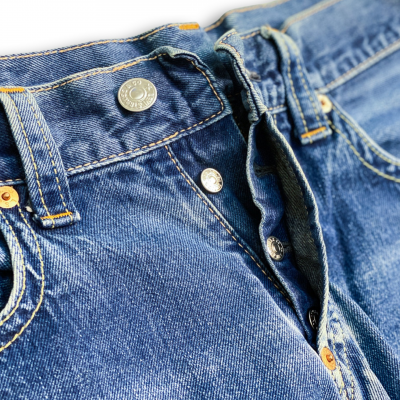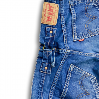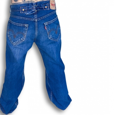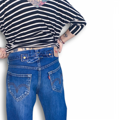 Japanese Levis (please note the measurements on the jeans are in CM not inches) with back cinch and button fly.